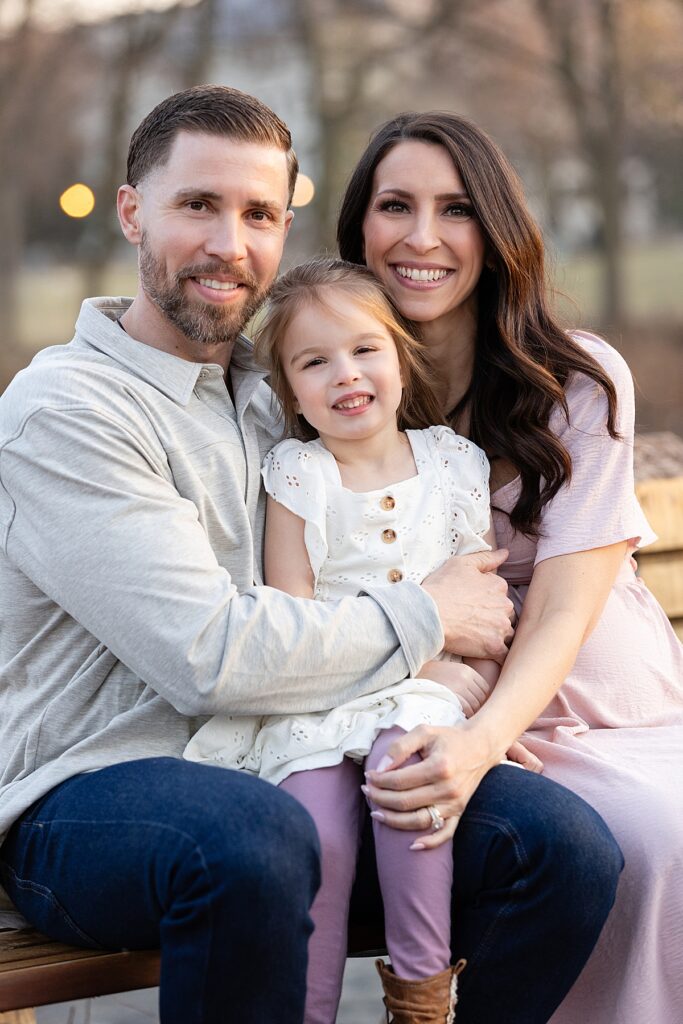A couple of weeks ago, on one of those rare, sunshine-filled March days, I met up with the sweetest family for a maternity photoshoot. Meagan, Ralph, and their four-year-old daughter Gracie joined me for a relaxed, golden-hour Naperville Riverwalk maternity photoshoot to celebrate baby girl #2 on the way!